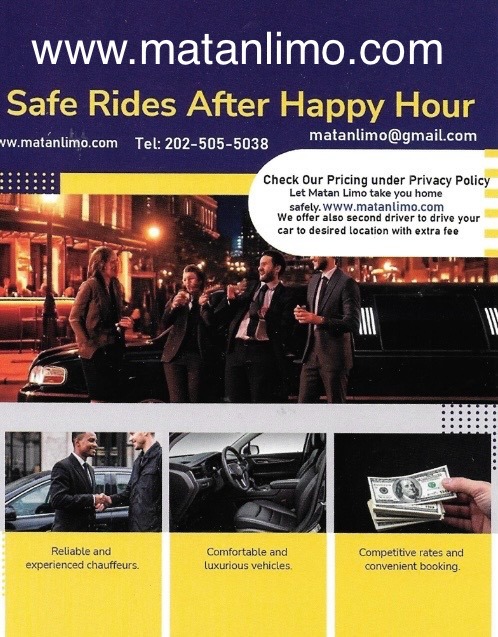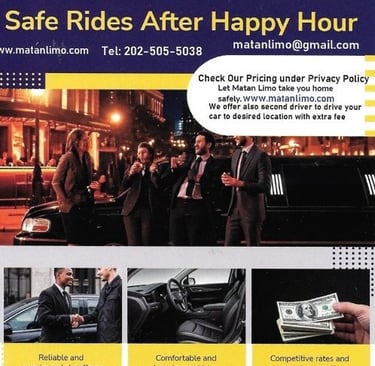 At Matan Limo LLC, we believe that a fun night out should never end in regret. Whether you’ve enjoyed a few drinks during happy hour, a celebration, or a weekend night on the town, your safety—and the safety of others on the road—matters most. That’s why we proudly offer reliable, luxurious, and responsible transportation services across Northern Virginia (NOVA) to ensure you get home safely.